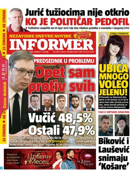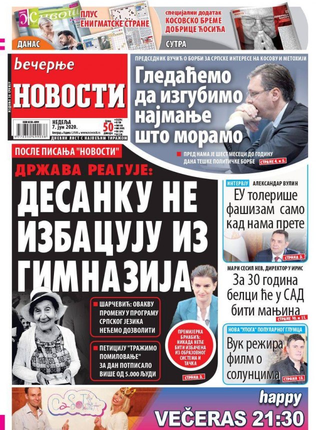 NASLOVNE STRANE DNEVNIH NOVINA: