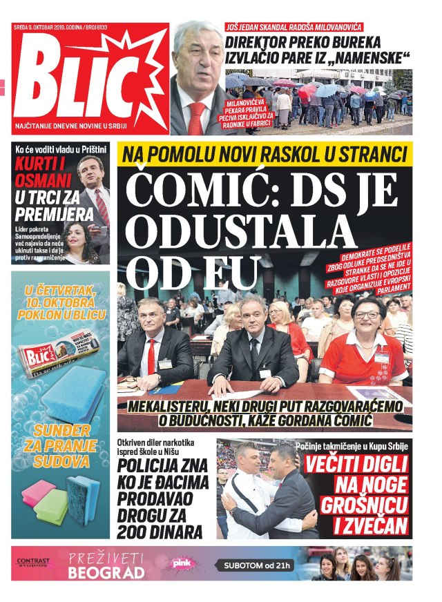 NASLOVNE STRANE DNEVNIH NOVINA: