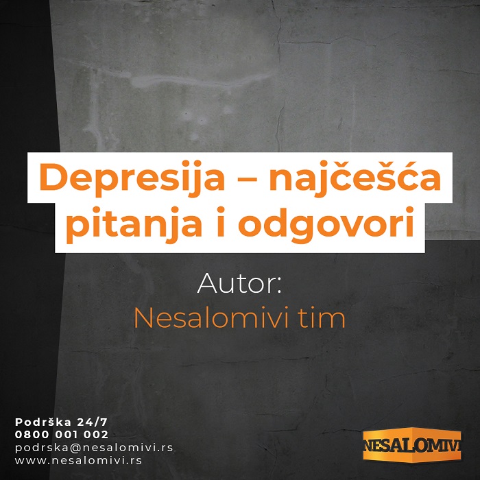Ukoliko osećate tugu, prazninu, bezvoljni ste, imate osećaj manje lične vrednosti, depresivni ste pozovite SOS broj za borbu protiv depresije 0800 001 002. Pozivi su besplatni, a SOS linija dostupna 24 sata, 7 dana u nedelji. Na SOS liniji rade stručnjaci, psiholozi i psihijatri Specijalnih bolnica za psihijatrijske bolesti u Vršcu, Gornjoj Toponici, Kovinu i Novom Kneževcu. Pomoć i podrška su dostupni i putem mejl adrese podrska@nesalomivi.rs. Na veb-sajtu kampanje za borbu protiv depresije i stigme koja prati obolele „Nesalomivi“ – www.nesalomivi.rs, koji je pokrenula Hemofarm fondacija u saradnji sa Filozofskim fakultetom Univerziteta u Beogradu i uz podršku Ministarstva zdravlja Srbije, su dostupni tekstovi i saveti stručnjaka za unapređenje psiho-socijalnog zdravlja, ispovesti osoba koje se bore protiv depresije, najčešća pitanja i odgovori o depresiji, kao i saveti za prevazilaženje ove bolesti.