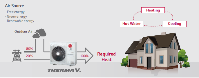 Toplotne pumpe vazduh-voda funkcionišu po principu izvlačenja toplote iz spoljašnjeg vazduha koja se potom koristi da zagreje/ohladi unutrašnjost objekta. Dobijena toplotna energija se prenosi na sisteme grejanja, hlađenja i pripreme tople sanitarne vode. Sistemi prenosa toplote mogu biti prilagođeni svakom prostoru i potrebi. Najpopularniji su sa podnim/zidnim grejanjem, fancoil aparatima ili preko radijatora.