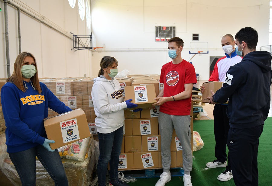 Pakete, koji se sastoje od osnovnih životnih namirnica i higijenskih sredstava, sugrađanima su na kućne adrese dostavili Mozzart-ovi volonteri, zajedno sa košarkašima i fudbalerima čuvenog „Borca“ iz Čačka.