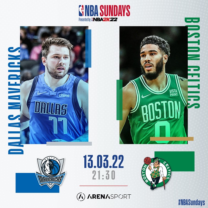 Publika u Srbiji predstojećeg vikenda moći će da gleda dve u najavi uzbudljive utakmice, MIL @ GSW (NBA Saturdays, 13. marta u 02:30) i DAL @ BOS (NBA Sundays, 13. marta u 21:30), i da uživa u igri velikih zvezda iz ovih NBA timova: sjajnog Janisa Adetokumba, dva puta MVP-ja NBA lige, najzaslužnijeg za prvu titulu Baksa u poslednjih 50 godina i neverovatnog Stefena Karija, koji je prešao brojku od 20.000 poena datih tokom svoje blistave NBA karijere koja traje od 2009, zatim reprezentativca Slovenije Luke Dončića, zvanično najboljeg u Zapadnoj Konferenciji za februar 2022. i izvanrednog krilnog igrača Bostona, Džejsona Tejtuma (na fotografijama u prilogu).