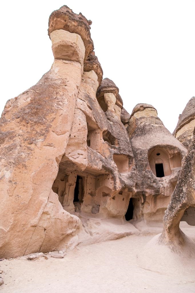 „Vilinski dimnjaci“ su prvo što vam pada na pamet kada razmišljate o Kapadokiji. Ove drevne stenske formacije koje su simbol Kapadokije mogu se uočiti sa bilo kog mesta u region, a najlepši primerci se nalaze u Pašabagu, gde su njihova konusna tela sa „kapicama“ formirana od tvrdih stena. Ipak najbolji način da doživite prekrasan pogled na ove stenske formacije je iz balona na vrući vazduh. Dok se balon lagano uzdiže pri izlasku sunca, imaćete priliku da vidite spektakularne doline Kapadokije ispod vaših nogu.