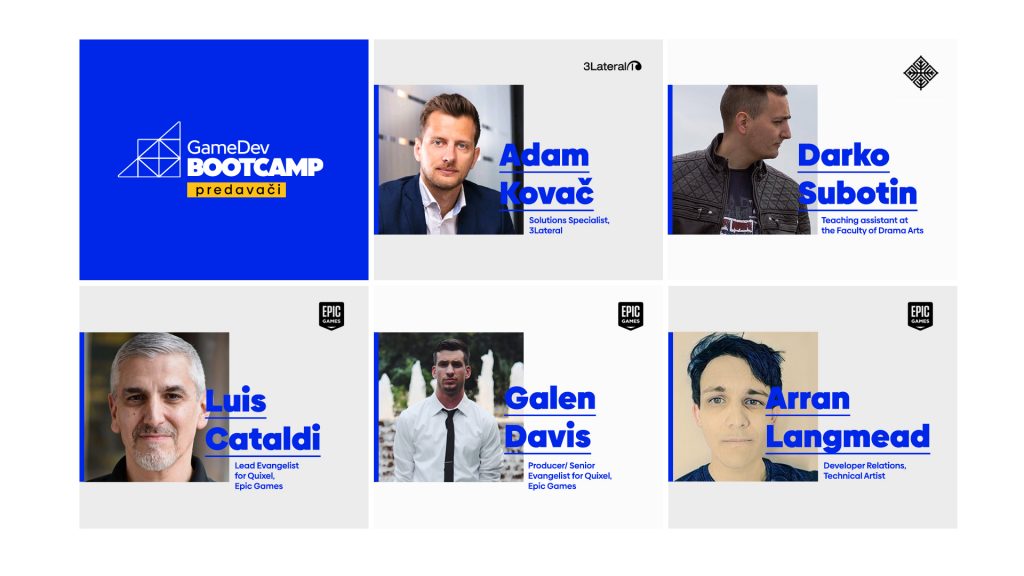 Udruženi u želji da pruže podršku mladim talentima i domaćoj gejming zajednici, predavači iz kompanije Epic Games, Luis Cataldi, glavni gejm artista, direktor za edukaciju i obrazovne resurse, i vodeći stručnjak za učenje Unreal Engine-a, Arran Langmead, tehnički artista i menadžer za odnose sa programerima, Galen Davis, producent i senior stručnjak za učenje Unreal Engine-a, zatim Adam Kovač, specijalista za rešenja iz kompanije 3Lateral i Darko Subotin, docent na Fakultetu dramskih umetnosti, Univerziteta u Beogradu, nesebično su podelili sa polaznicima svoje znanje i iskustvo i pritom, reklo bi se, veoma uživali.