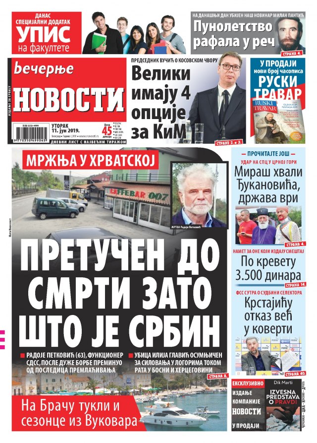 DAČIĆ: KOSOVSKE VLASTI SPREMAJU NAPAD NA SEVER KOSOVA – Ministar spoljnih poslova Srbije Ivica Dačić rekao je na sednici Saveta bezbednosti Ujedinjenih nacija (SB UN) da, prema saznanjima Beograda, kosovske vlasti spremaju napad na sever Kosova i upitao da li će SB UN zaštiti Srbe ili ne, pozivajući zvaničnike UN da ozbiljno shvate njegovo upozorenje.