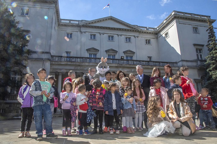 I ove godine je za decu bez roditeljskog staranja, decu sa teškoćama u intelektualnom razvoju i socijalno ugroženu decu, iz domova i udruženja širom Srbije i Republike Srpske, organizovano veliko veselje kada su u Kraljevskom parku ispred Belog Dvora tražili šarena jaja, nakon čega su Prestolonaslednik i Princeza deci uručili igračke, slatkiše i druge poklone. Prijem je održan i u prisustvu Njegovog Preosveštenstva vikara Njegove Svetosti Patrijarha srpskog Porfirija, Episkopa topličkog gospodina Petra, koji je deci govorio o značaju Vaskrsa.