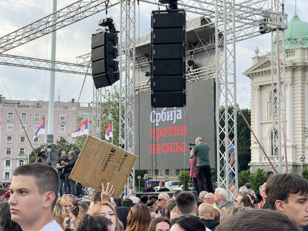 „Ovaj broj ljudi sedmi put zaredom potvrđuje kakva je energija među građanima Srbije. Što se tiče radikalizacije, u četiri grada ćemo blokirati saobraćajnice, to je za ovu nedelju. Sledeće nedelje će biti još, ili će stati nasilje ili će stati Srbija. Ili će vlast ispuniti zahteve, ili će Srbija morati da stane.“