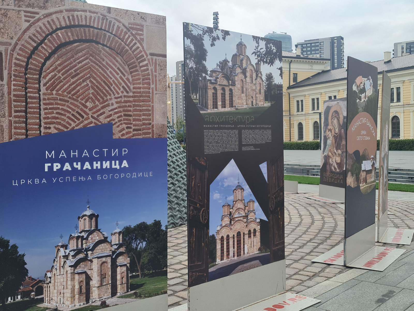 Panoi ilustrovani fotografskim materijalom posetiocima približavaju arhtitektonska, slikarska i skulptorska dostignuća ovih nezamenljivih spomenika kulture naše države, kao i njihov istorijat. Zadužbine loze Nemanjić imaju dubok istorijski i duhovni značaj za Srbiju, i svedočanstvo su snage naše države, kao i vrednosti i kulture koju je naš narod očuvao tokom burne istorije; a na ovoj izložbi posetioci imaju priliku da pobliže upoznaju Bogorodičinu crkvu u Studenici, Žiču, Mileševu, Sopoćane, Gradac, Crkvu Bogorodicu Ljevišku, Staro Nagoričane, Gračanicu, Dečane i Mateič.
