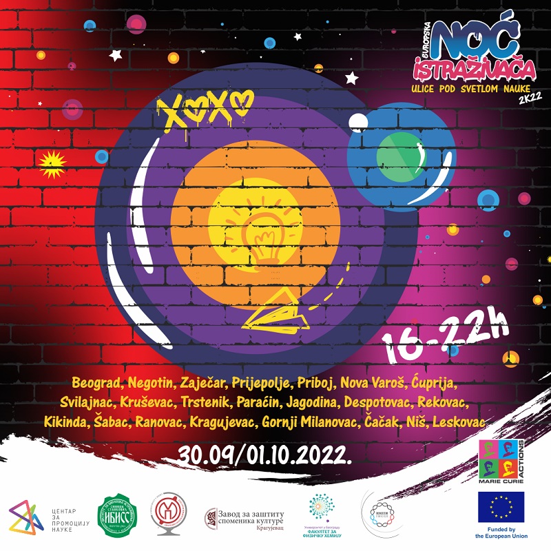 Najveća naučna zabava u Evropi održaće se istovremeno u više od 25 zemalja, a očekuje se da će se naučnoj avanturi širom kontinenta pridružiti više od milion posetilaca! Nakon dve godine koje su učinile da i ova manifestaciju bude održana u skladu sa protivpandemijskim merama, nauka ove jeseni ponovo izlazi na ulice, a naučne istraživačice i istraživači zauzeće i brojne trgove, ustanove kulture, parkove, kao i niz drugih javnih mesta. Zbog toga će glavna tema ove godine upravo biti „ulična nauka“, a sva dešavanja biće organizovana potpuno besplatno za širu publiku svih uzrasta.
