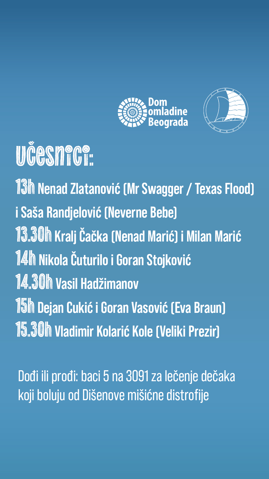 Za dobro raspoloženje tokom koncerta biće zadužena poznata imena sa domaće muzičke scene, uključujući Nenada Zlatanovića (Mr Swagger / Texas Flood) i Sašu Ranđelovića (Neverne Bebe) u 13h, Kralja Čačka (Nenada Marića) i Milana Marića u 13:30h, Nikolu Čuturila i Gorana Stojkovića u 14h, Vasila Hadžimanova u 14:30h, Dejana Cukića i Gorana Vasovića (Eva Braun) u 15h kao i Vladimira Kolarića Koleta (Veliki Prezir) u 15:30h.