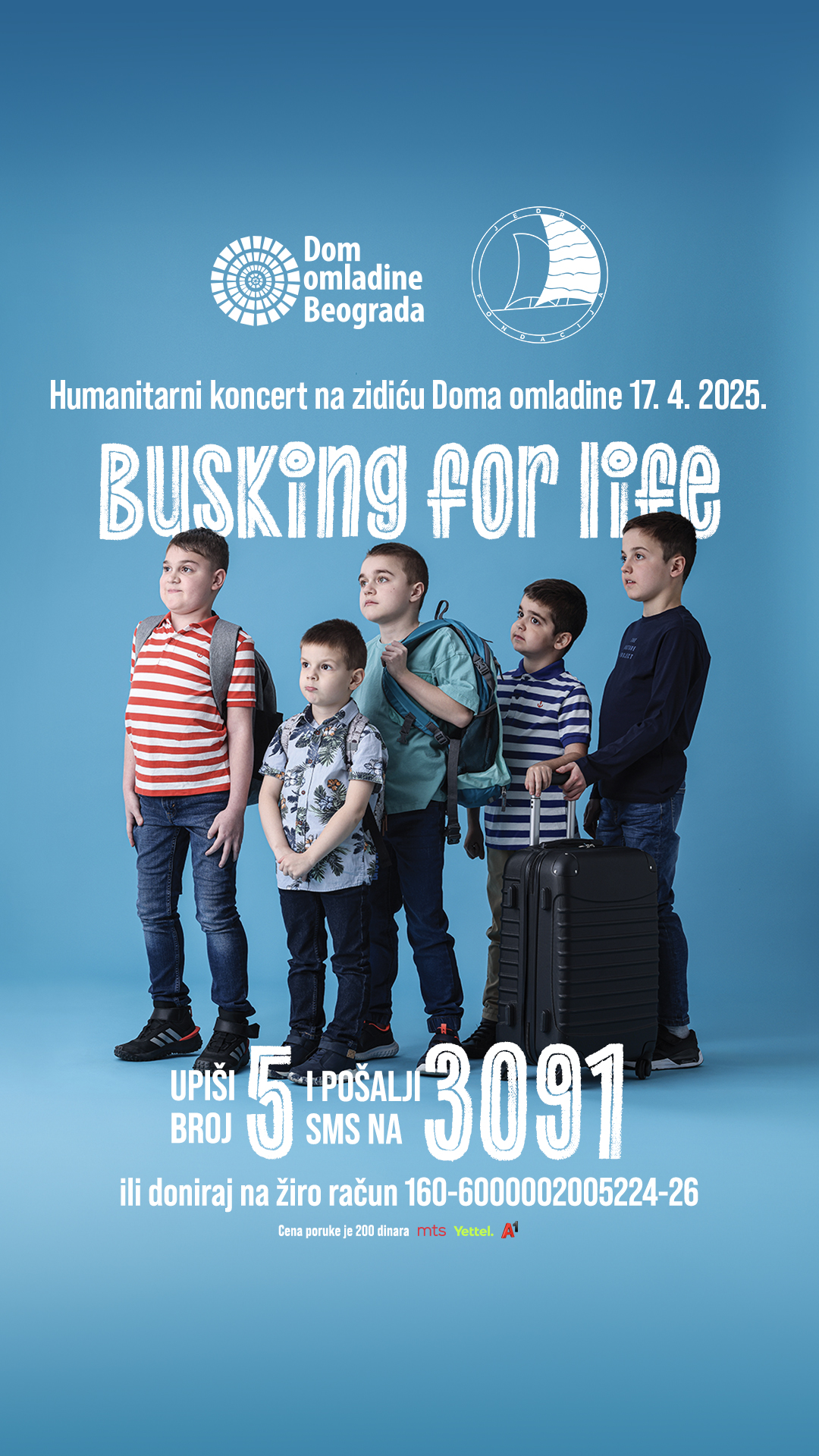 Fondacija Jedro u četvrtak 17. aprila od 13h (zidić kod Doma omladine Beograda, ugao Dečanska i Makedonska ulica) poziva sve ljubitelje dobre muzike da iskoriste lepo, sunčano vreme i pridruže se humanitarnom koncertu „Busking for life“. Prisustvo koncertu biće besplatno za sve posetioce, a za one koji žele da podrže Fondaciju Jedro dok uživaju u muzici, biće postavljeni štandovi za donacije.