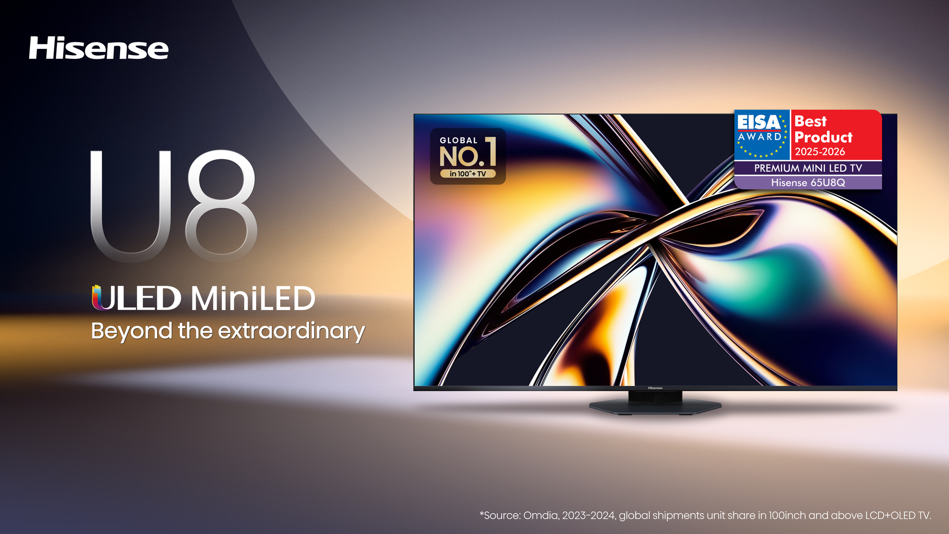 Nagrađeni Hisense U8Q TV (nagrada EISA PREMIUM MINI LED TV 2025-2026) dolazi u veličini od 65 inča, dok je U7Q PRO dostupan u veličinama od 65 inča (nagrada EISA BEST BUY MINI LED TV 2025-2026) i U7Q 100 inča (nagrada EISA BEST GIANT TV 2025-2026). Zahvaljujući Mini LED tehnologiji, pružaju najverniju crnu i izuzetnu jačinu osvetljenja, oživljavajući svaki kadar adekvatnim kontrastom. Precizna kontrola pozadinskog osvetljenja obezbeđuje da ne propustite nijedan detalj – bilo da je kadar taman ili osvetljen.