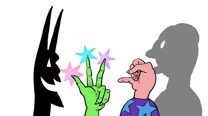 Predstava pozorišta senki o čoveku koji je prodao svoju senku đavolu. Đavo nudi tri večne čovekove težnje: strast, vlast i znanje. Glavni junaci su dve ruke jednog čoveka. Ruka bez senke nije više čovek nego samo ruka, a senka bez ruke nije više od opsene.