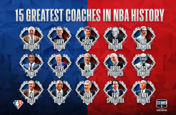 15 odabranih trenera zajedno su osvojili više od 14.000 utakmica tokom redovnih sezona, vodili su timove do osvajanja 45 NBA šampionata i poneli 16 priznanja NBA trener godine tokom više od 300 trenerskih sezona. Detaljne informacije o svakom od trenera dostupne su ovde.