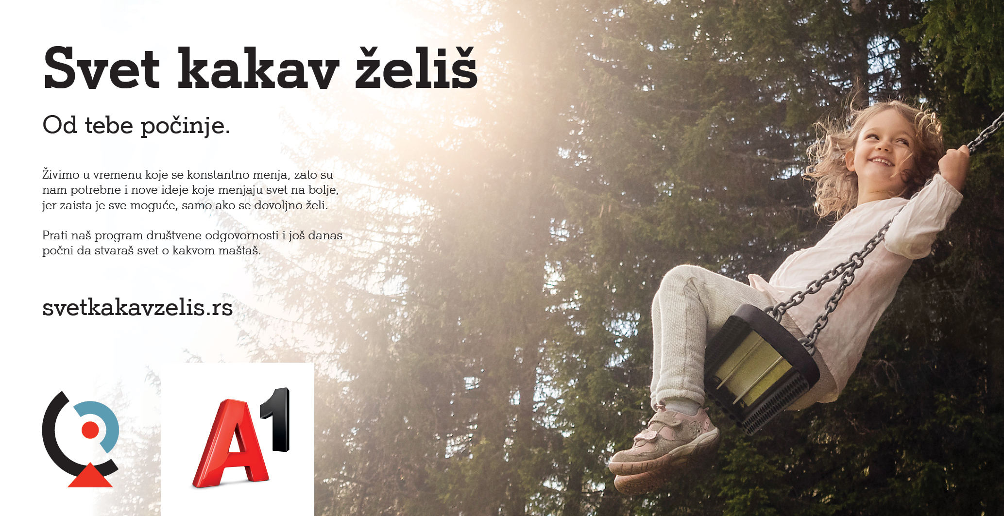Kompanija A1 Srbija poziva ustanove, organizacije i udruženja širom Srbije da u okviru trećeg ciklusa društveno odgovornog programa „Svet kakav želiš“ prijave svoje ideje i projekte iz oblasti javnog zdravlja, obrazovanja i ekologije. Pet pobedničkih projekata iz pet različitih gradova osvojiće ukupno 2,5 miliona dinara i mentorstvo za realizaciju projekata koji unapređuju kvalitet života lokalne zajednice i podstiču rešavanje izazova sa kojima se ona suočava. Prijave su otvorene do 30. aprila 2022. godine.