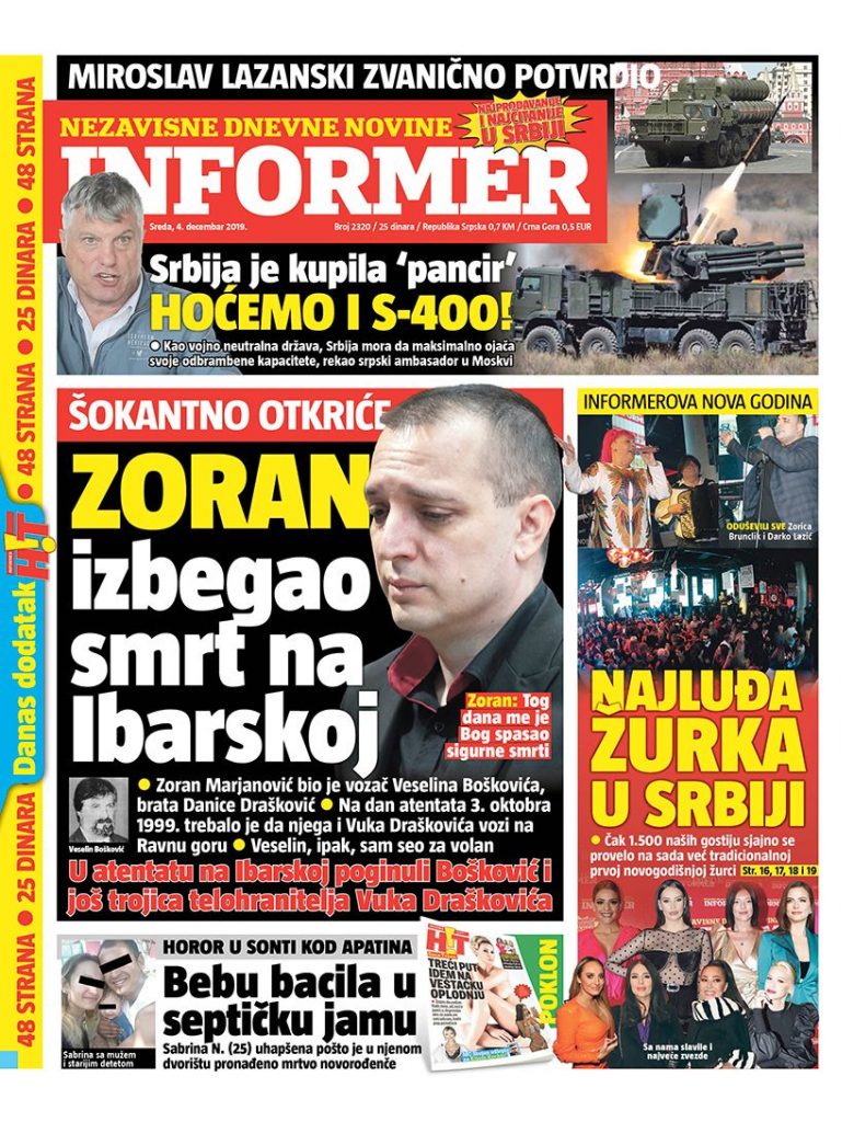 NASLOVNE STRANE DNEVNIH NOVINA: