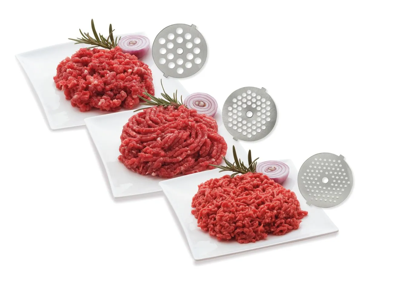 Savršena struktura mesa je ključna za uspeh mnogih recepata, a sa Gorenje mašinom za mlevenje, možete birati između tri ploče za mlevenje – za fino, srednje i grubo mlevenje (3, 6 i 8 milimetara). Tako možete kreirati raznovrsna jela kao što su mesne kuglice, pljeskavice, lazanje, bolonjeze, testenine od mesa ili čak domaće kobasice.