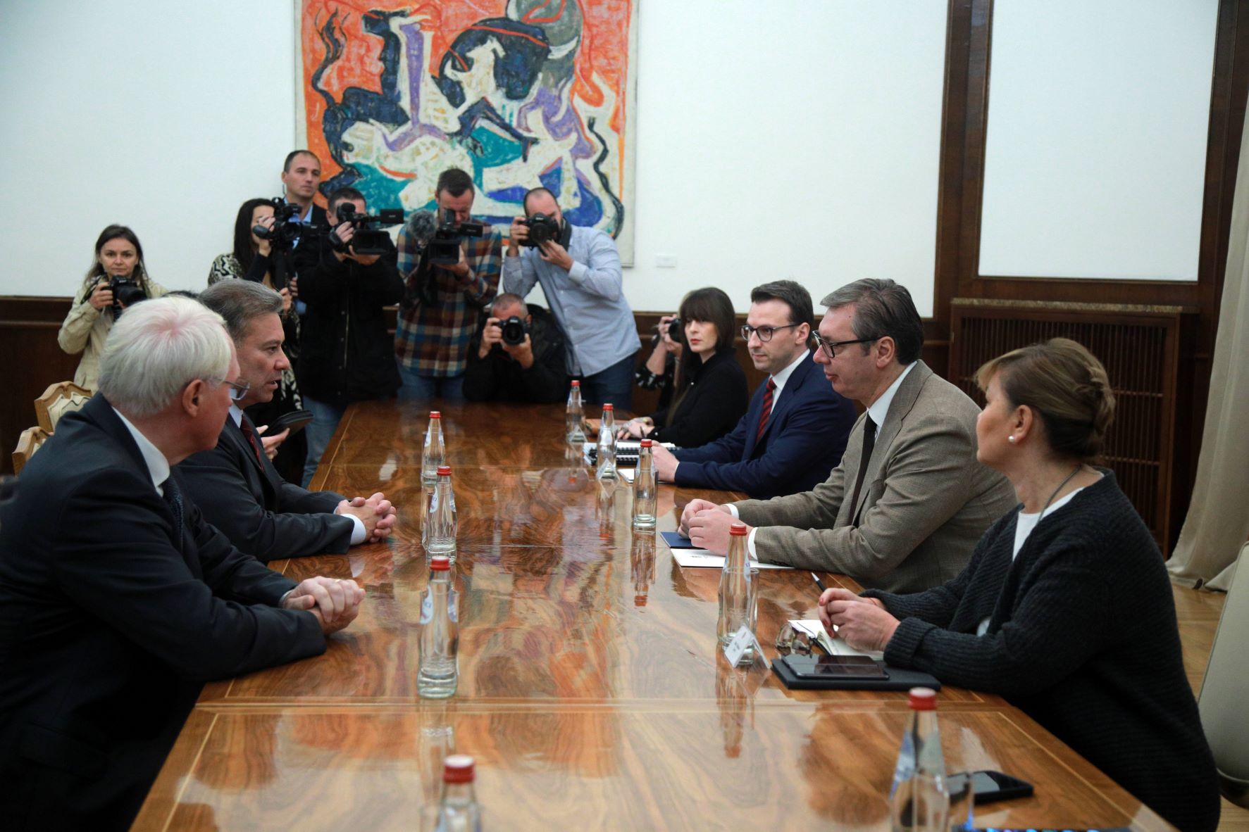 (Beta) – Ambasadori zemalja Kvinte i šef Delegacije EU u Beogradu Emanuele Žofre uručili su danas predsedniku Srbije Aleksandru Vučiću zajednički dokument u kojem izražavaju zabrinutost zbog mogućeg narušavanja stabilnosti u regionu, uoči isticanja roka za preregistraciju vozila sa srpskim tablicama na Kosovu, saopštio je kabinet srpskog predsednika.