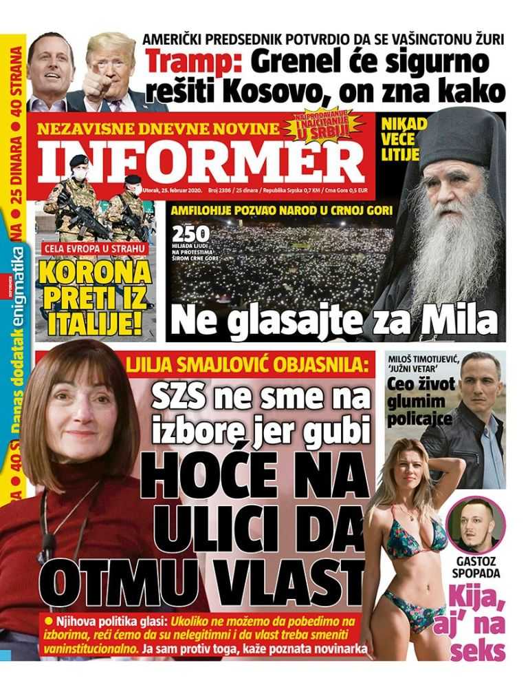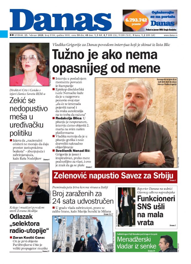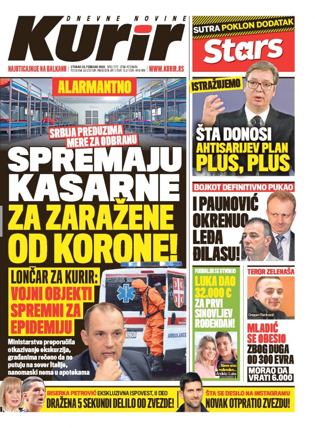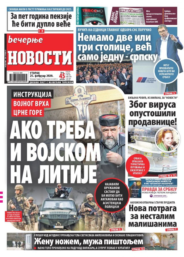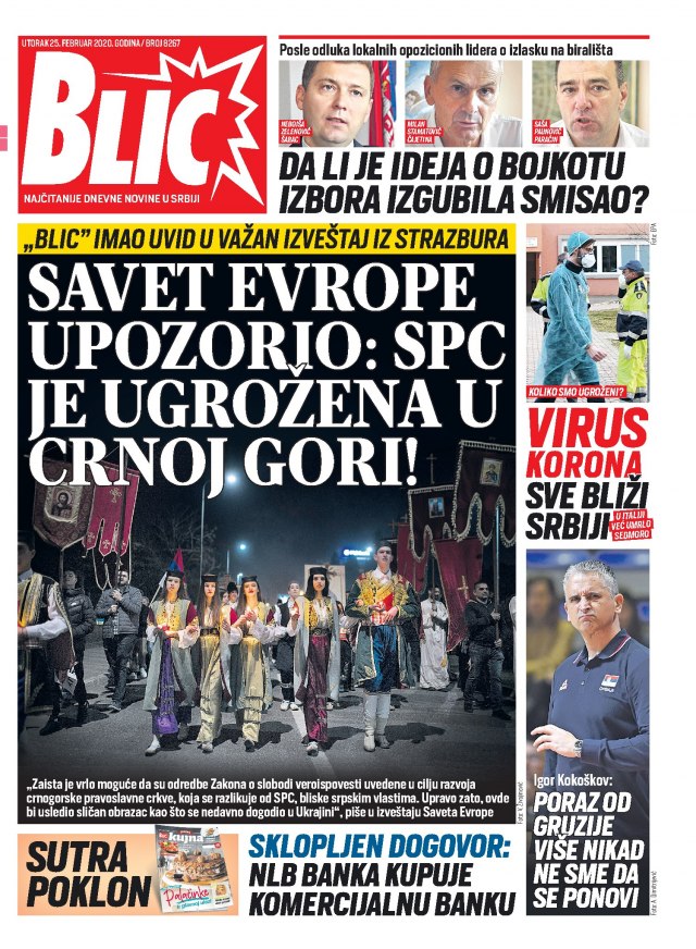 NASLOVNE STRANE DNEVNIH NOVINA: