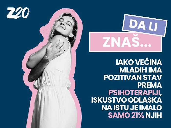 Drugu godinu zaredom platforma Zdravo dvadesete, pod pokroviteljstvom kompanije Galenika, sprovela je nacionalno istraživanje o percepciji zdravlja i zdravim navikama mladih u Srbiji. Iako većina ima pozitivan stav prema psihoterapiji, iskustvo odlaska na psihoterapiju je imalo samo 21% njih.