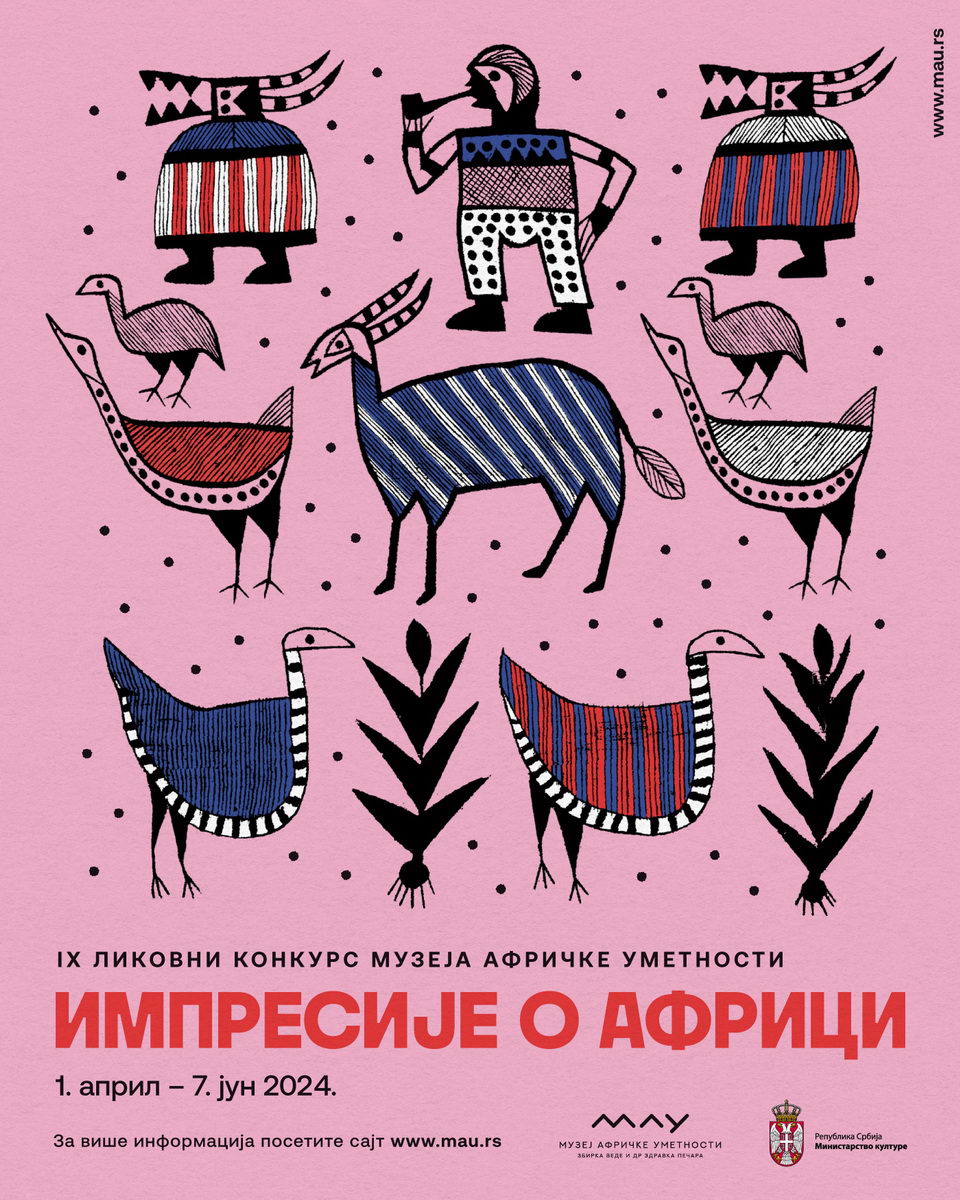 MAU i ove godine organizuje likovni konkurs za decu i mlade na temu „Impresije o Africi“ i to od 1. aprila do 7. juna. Na konkursu mogu učestvovati grupe dece/mladih, uzrasta od 6 do 18 godina, iz osnovnih i srednjih škola, predškolskih ustanova, likovnih ateljea, kulturnih centara i ostalih radionica, klubova, sekcija. Najuspešniji crteži biće predstavljeni krajem juna na izložbi radova u okviru godišnje manifestacije „Afro festival 2024“ koja se održava u bašti Muzeja, a autore najuspešnijih radova očekuju specijalne nagrade.