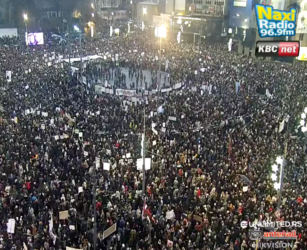 Sinoćni protest bio je najveći ne samo protiv aktuelnih vlasti, nego i najveći protest ikad održan u Srbiji, navode iz Arhiva javnih skupova precizirajući da se na Slaviji i u prilaznim centralnim beogradskim ulicama juče okupilo iše ljudi nego što se nalazilo oko Skupštine u najkritičnijim momentima 5. oktobra 2000.