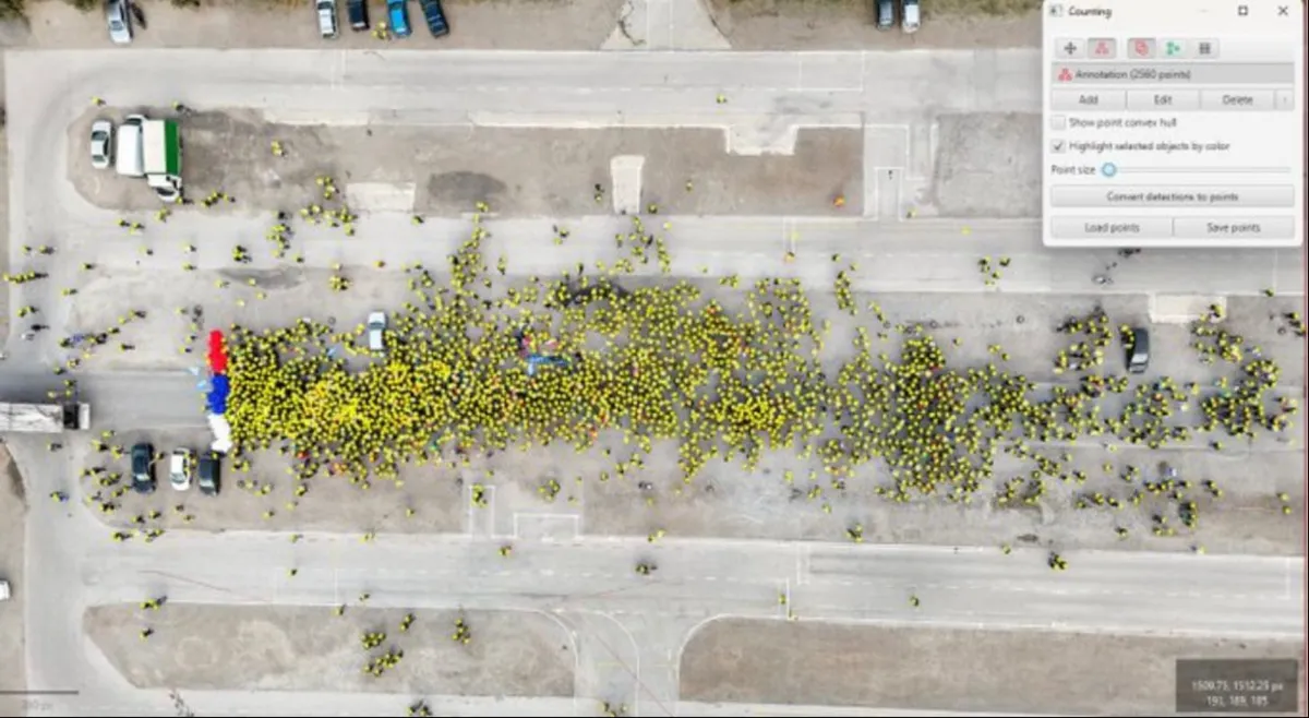 Kako navode, na dostupnim snimcima iz drona, na kojima je moguće pojedinačno obeležiti i brojati učesnike, u Nišu je izbrojano oko 1.500, a u novosadskom naselju Klisa oko 2.600 ljudi.