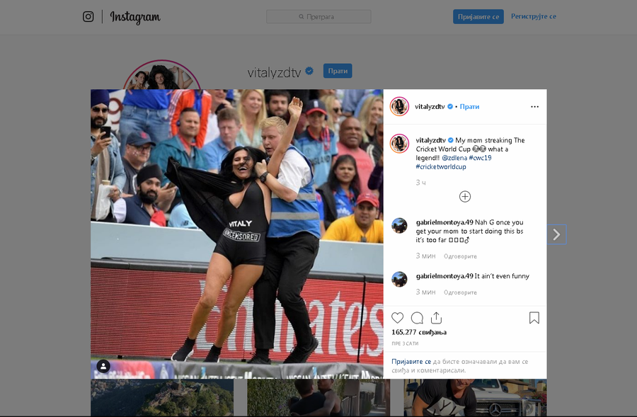Svet Novi upad na teren, ovoga puta tokom finala Svetskog prvenstva u kriketu: Posle devojke, Vitali Zdorovetskij na teren poslao majku Nedeljnik.rs