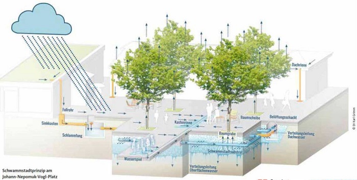U Beču se primenjuje i relativno nov sistem – princip sunđeraste strukture uličnih podloga, koje ispunjavaju kako tehničke zahteve izgradnje puteva, tako i biološke potrebe drveća. Zemljište ispod pešačkih staza, parkinga ili ulica je porozno, drveće dobija više prostora za širenje korenja i može da upije više vode, a dodatni efekat je stvaranje prostora za zadržavanje kišnice, što rasterećuje kanalizacioni sistem i obezbeđuje drveću vodu tokom sušnih perioda.