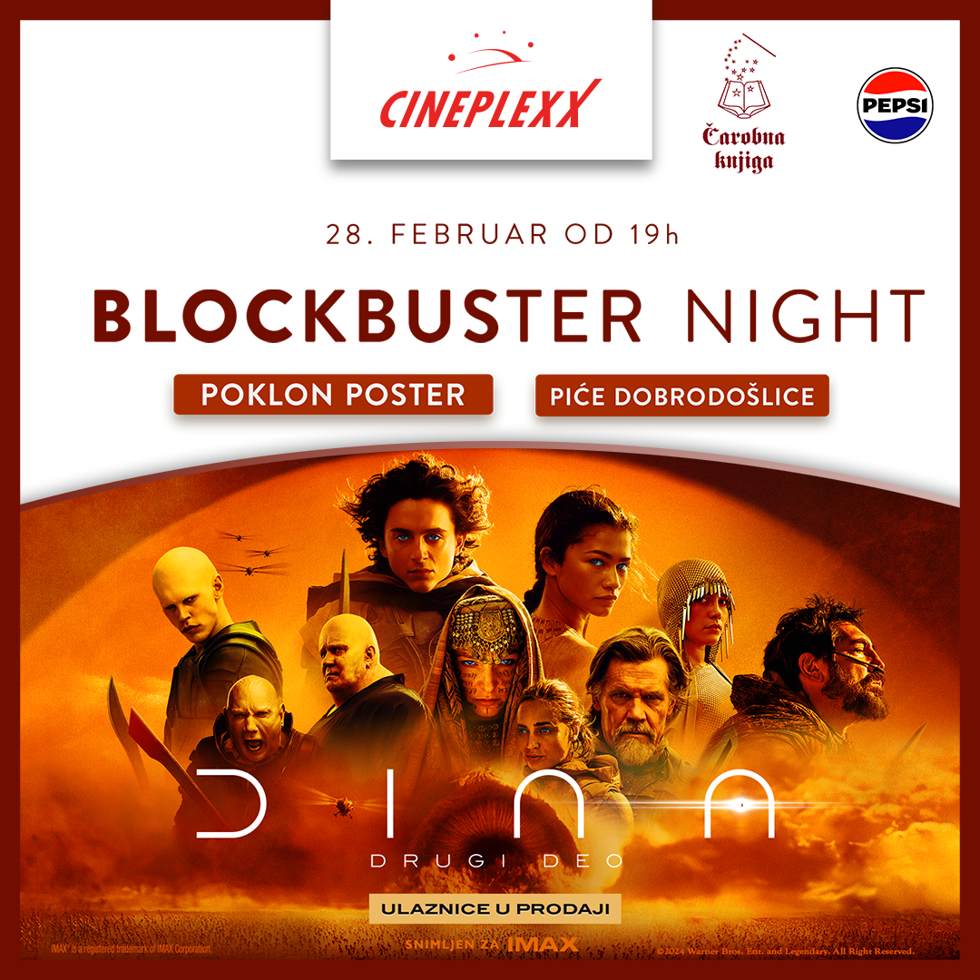 *Blockbuster Night događaj održava se u svim Cineplexx bioskopima izuzev u Cineplexx Galerija bioskopu.