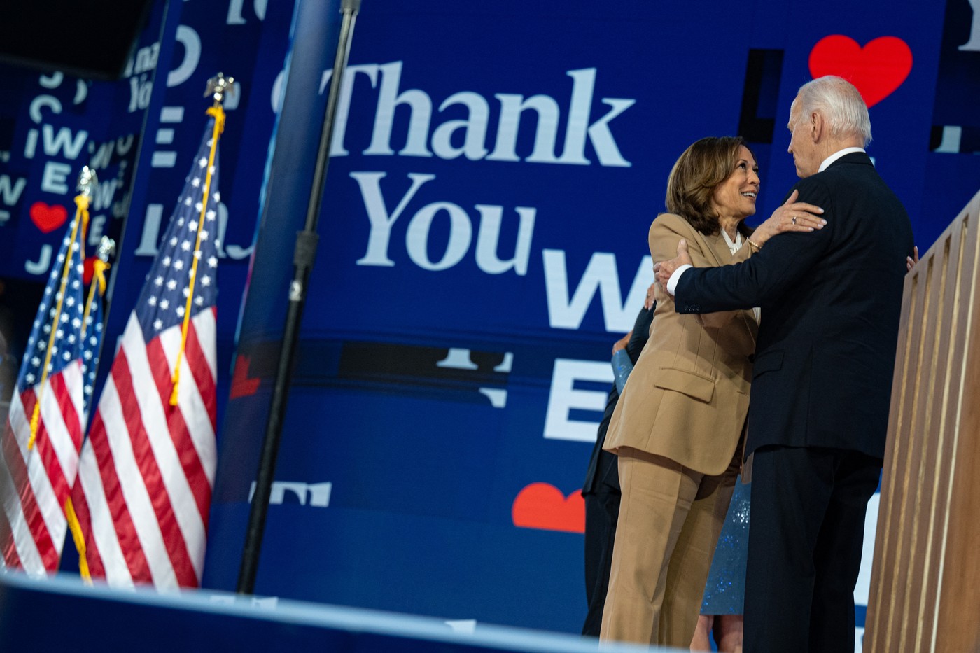 Haris je nakon njegovog obraćanja zagrlila Bajdena i njegovu porodicu.