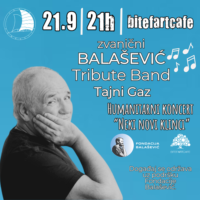 U BitefArtCafeu će se u nedelju, 21. septembra, održati humanitarni koncert „Neki novi klinci“, na kojem će nastupiti jedini zvanični Balašević tribute bend, „Tajni Gaz„. Fondacija „Jedro“ uz podršku Fondacije „Balašević“ organizuje događaj posvećen muzici Đorđa Balaševića. Pesme koje su mnogima značile i ostavile neizbrisiv trag u našim životima, ponovo će se čuti. „Tajni Gaz“ će tokom dva i po sata svirati najlepše Balaševićeve numere, prenoseći emociju i energiju koju je on utkao u svaku notu. Ovog puta, muzika koju volimo postaje most dobrote i solidarnosti, jer će sav prihod od prodaje karata biti preusmeren za lečenje pet dečaka obolelih od Dišenove mišićne distrofije, opake mišićne bolesti koja im krade detinjstvo. Svi zainteresovani karte mogu kupiti ovde.