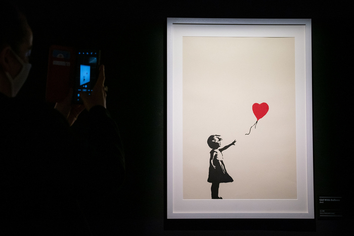 Benksi je devojku koja pokušava da uhvati crveni balon u obliku srca, iscrtao širom Londona 2002. godine. Prva od njih se pojavila na zidu u istočnom Londonu, a postoji i ispod mosta Vaterlo.