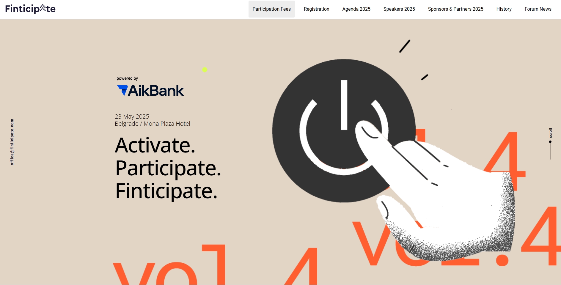 Četvrti godišnji Finticipate – SEE FinTech Forum Powered by AikBank, vodeće mesto okupljanja za profesionalce iz oblasti finteka i finansija, regulatore i inovatore, održaće se 23. maja 2025. godine, u hotelu Mona Plaza u Beogradu. Finticipate Forum powered by AikBank tog dana biće epicentar brojnih diskusija i razmene mišljenja u vezi sa ključnim trendovima i izazovima koji oblikuju finansijsku industriju u centralnoj i jugoistočnoj Evropi i šire.