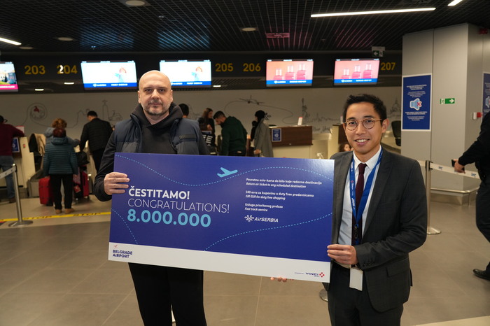 „Danas obeležavamo značajan trenutak u istoriji beogradskog aerodroma – osmomilionitog putnika, što oslikava posvećenost kompanije VINCI Airports da Beograd pozicionira kao ključnu tačku vazdušnog saobraćaja u regionu. Ovaj uspeh ne bi bio moguć bez značajnih radova na proširenju aerodroma od 2019. godine, a pre svega bez poverenja naših putnika. Zahvaljujemo se putnicima koji ukazuju poverenje beogradskom aerodromu“ izjavio je Šivoan Rem, generalni direktor kompanije Belgrade Airport.