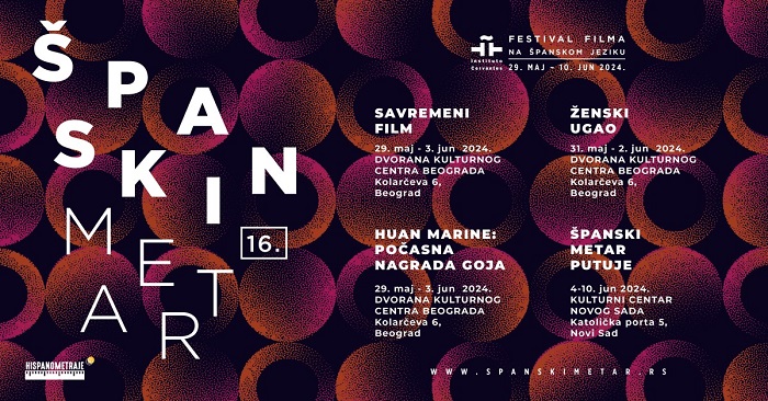 Šesnaesto izdanje filmskog festivala Španski metar, u organizaciji Instituta Servantes u Beogradu, donosi ukupno dvadeset filmova iz zemalja španskog govornog područja. Filmovi iz glavnog programa biće prikazivani od 29. maja do 3. juna u Dvorani Kulturnog centra Beograd, a potom i Kulturnom centru Novog Sada od 4. do 10. juna.