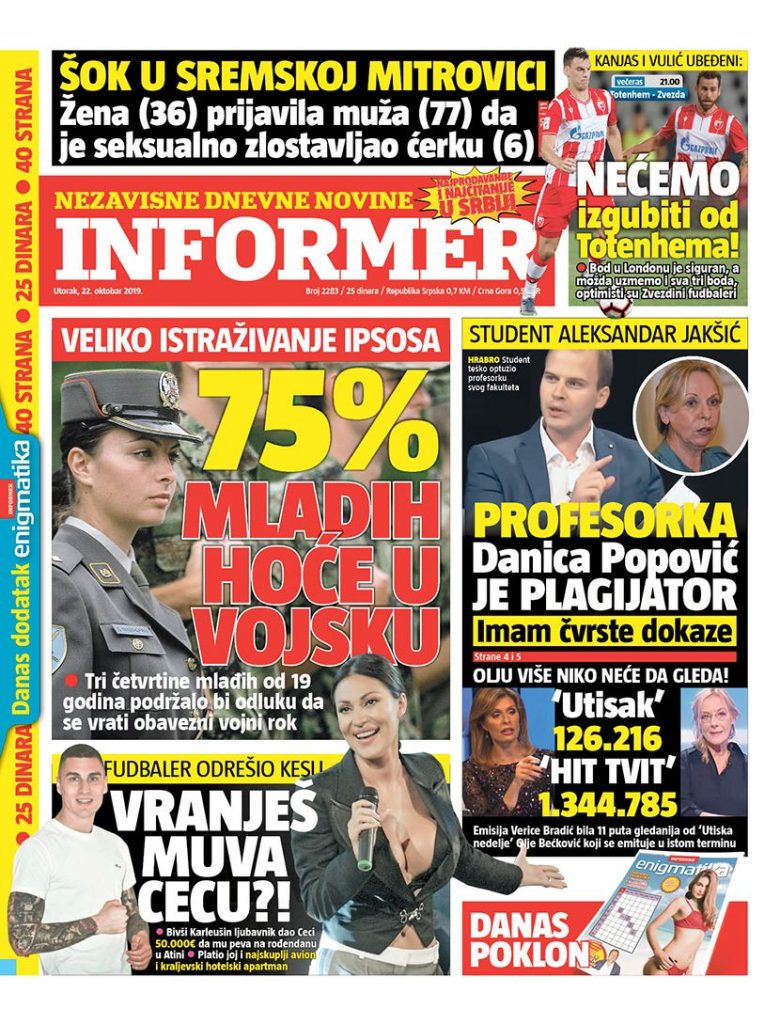 NASLOVNE STRANE DNEVNIH NOVINA: