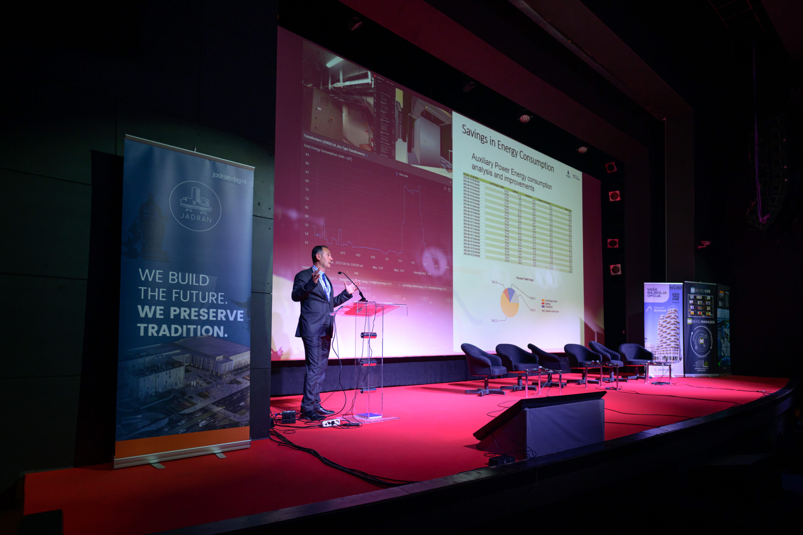 Sa ciljem da podigne svest o značaju i benefitima ove tehologije, građevinska kompanija Jadran, kao jedan od pionira među generalnim izvođačima radova u BIM tehnologiji, učestvovala je na četiri značajna događaja u okviru kojih su stručnjaci kompanije predstavljali iskustva primene tehnologije u praksi. Pomenute događaje organizovala je Privredna komora Srbije u saradnji sa Udruženjem BIM Srbija sa namerom da se stručnoj javnosti pokažu dobri primeri prakse i promovišu raznovrsne pozitivne strane BIM inovativne tehnologije.