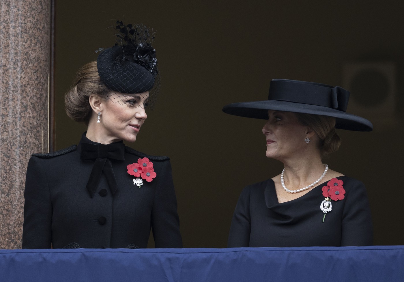 Sledeći događaj, Remembrance Day, koji je usledio jutro nakon, princeza od Velsa je takođe upriličila svojim dolaskom. Uz vojvotkinju od Edinburga, na balkonu koji gleda na Kenotaf, bila je i princeza Kejt, dok su gledale kako kralj Čarls spušta crni venac ukrašne makom i lišćem u čast palim vojnicima, kao i njegovom dedi kralju Džordžu VI i kraljici Elizabeti II. Za tu priliku, princeza Kejt je nosila crni kaput sa naglašenim ramenima ukrašenim sa mašnom od somotske trake, uz značku Kraljevskog vazduhoplovstva zajedno sa tri tradicionalna crvena cveta makova. Dopunila je izgled malim crnim šeširom, koji je imao crne ruže, pernate detalje i mrežasti veo. Prilikom ovog izgleda, počast je odala kraljici Elizabeti. Princeza Kejt nosila je Bahrain biserne minđuše, ukljopljene sa sofisticiranim dijamntom, koje su prvobitno bile poklonjene kraljici na dan njenog venčanja.