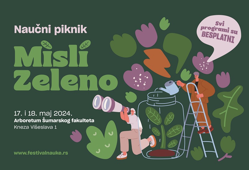 Treći Naučni piknik pod sloganom “Misli zeleno”, u organizaciji Festivala nauke i u saradnji sa Šumarskim fakultetom Univerziteta u Beogradu i u partnerstvu sa kompanijom Yettel, biće održan u prostoru Arboretuma Šumarskog fakulteta na Banovom brdu 17. i 18. maja, od 11 do 19 časova. Na ovom događaju će posetiocima biti predstavljene naučne priče uz akcenat na biologiju, ekologiju i održivi razvoj, a kroz interaktivne postavke, radionice i vođene ture u saradnji sa fakultetima institutima i organizacijama civilnog društva.