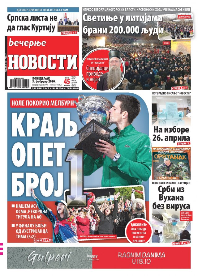 NASLOVNE STRANE DNEVNIH NOVINA: