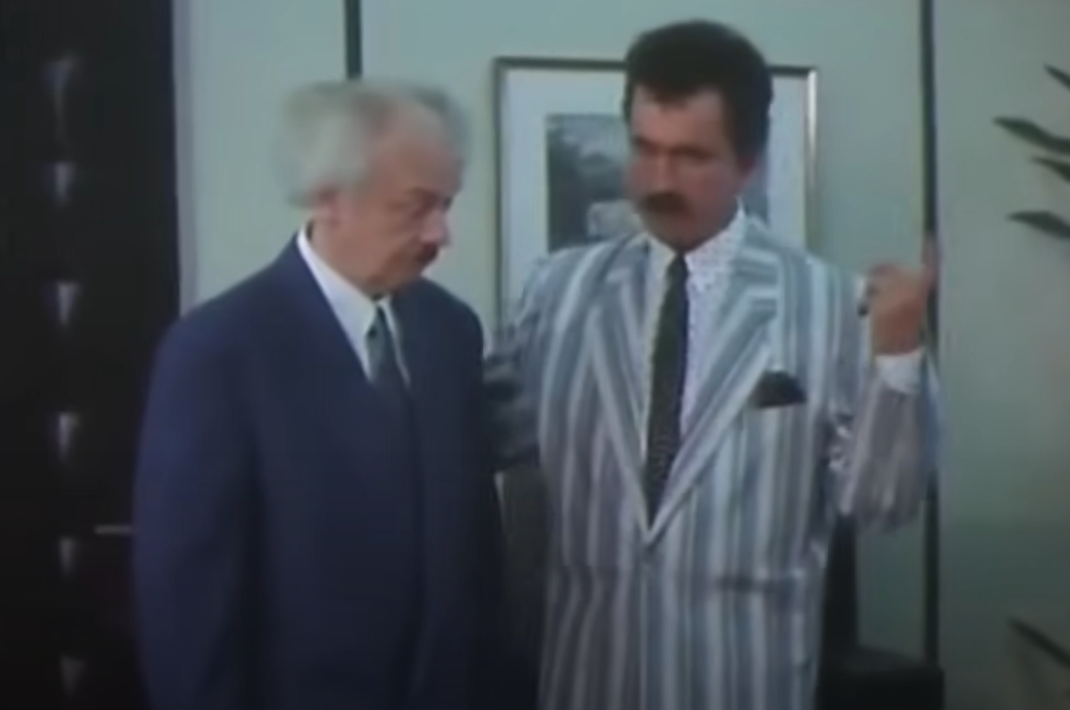 Zatim u Ružićevom videu ide scena dijaloga iz filma Tesna koža, u kojem Srećko Šojić hoće da suspenduje Dimitrija Mitu Pantića.