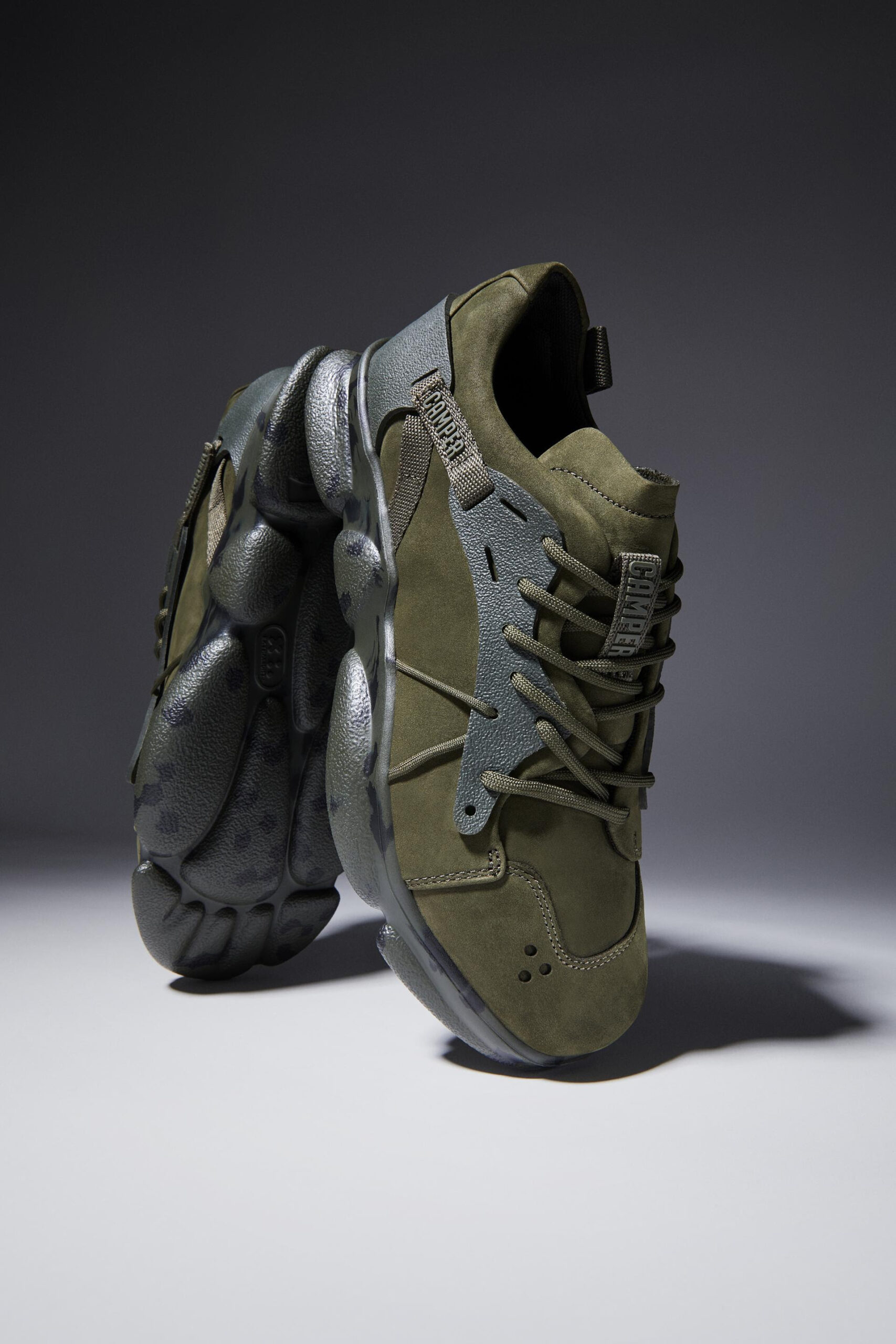 Kao Camper ikona još od 1995. godine, Pelotas Ariel je inspirisana sportskim pionirima i starim ručno šivenim fudbalskim loptama, a napravljena je u Evropi uz pomoć premium materijala. Ove sezone, duboka čizma je vraćena iz arhive i dobila je svež izgled kroz dvobojnu kožu sa ručno četkanim završnim slojem.