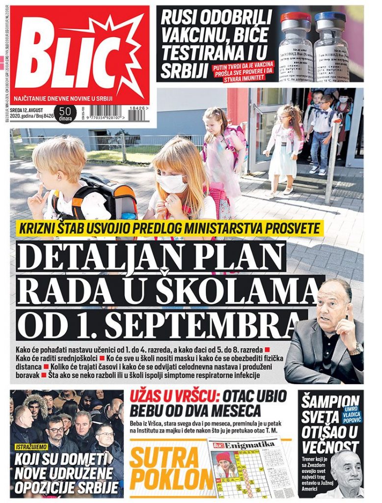 “Prilikom ulaska u školu dete će morati da stavi masku i tako da ide do svoje klupe, mi preporučujemo da se maska nosi stalno. S obzirom na to da će biti smanjena gustina smeštaja, deca će imati svoja četiri kvadratna metra te će masku moći da skinu jer postoji fizična distanca”, rekla je Kisić Tepavčivć.