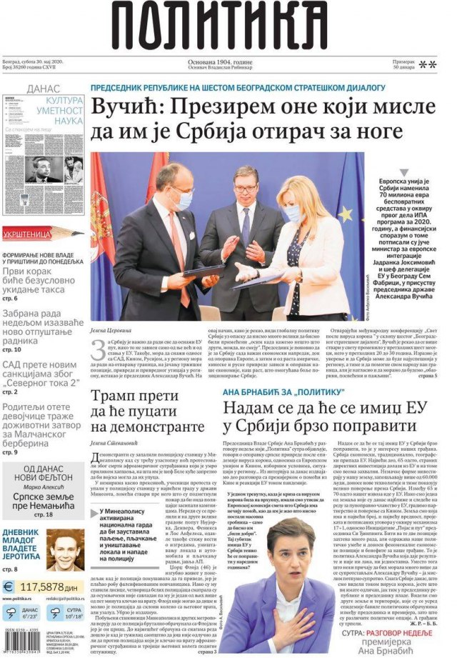 NASLOVNE STRANE DNEVNIH NOVINA: