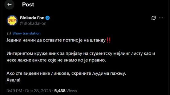 "Jedini način da ostavite potpis je na štandu": Studenti upozoravaju na lažne linkove i ankete koje kruže internetom