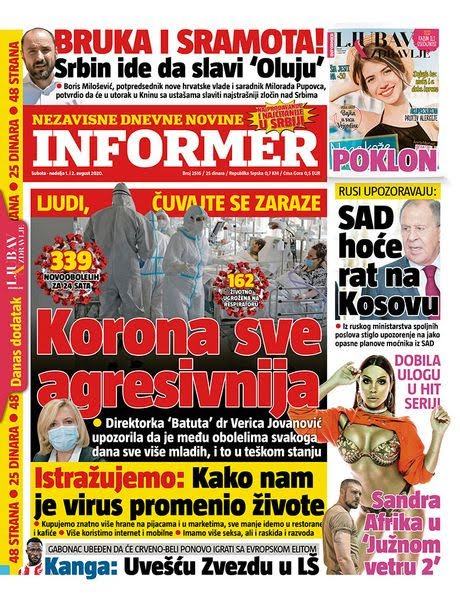 PRESEK – U poslednja 24 sata na virus korona testirano je 9.436 osoba, od čega je pozitivno 339. U protekla 24 sata od korona virusa preminulo je osam osoba.
