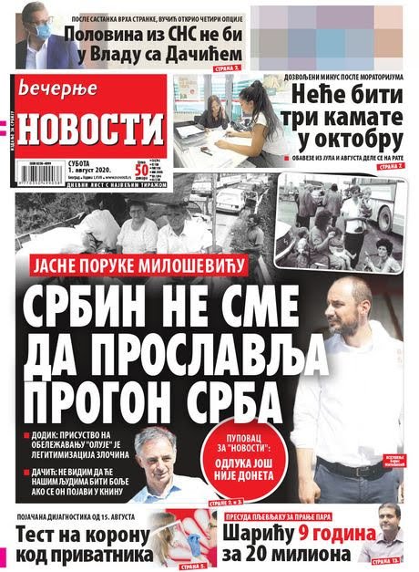 NASLOVNE STRANE DNEVNIH NOVINA: