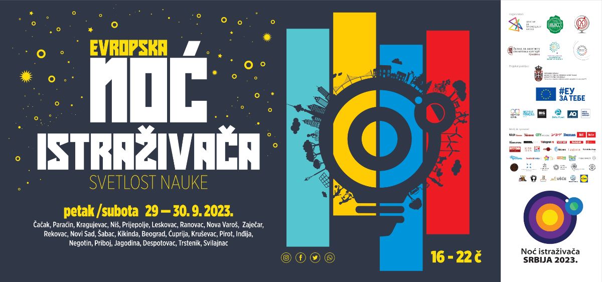 Najveća i najatraktivnija naučna manifestacija u zemlji, Evropska noć istraživača, biće održana četrnaesti put ove godine, 29. i 30. septembra od 16 do 22 sata u 24 grada širom Srbije pod sloganom „Svetlost nauke”. Kao i svake godine, programi su potpuno besplatni za posetioce.