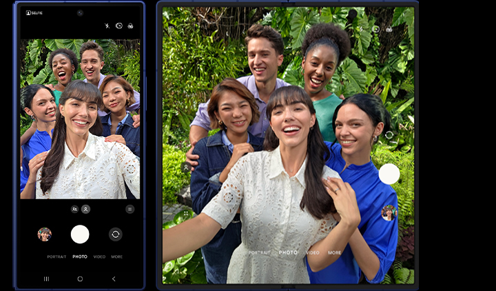 - Fotografije snimljene prednjom kamerom su za 25% šire i 2,5 puta jasnije u poređenju sa fotografijama koje su slikane sa Galaxy Z Fold6.